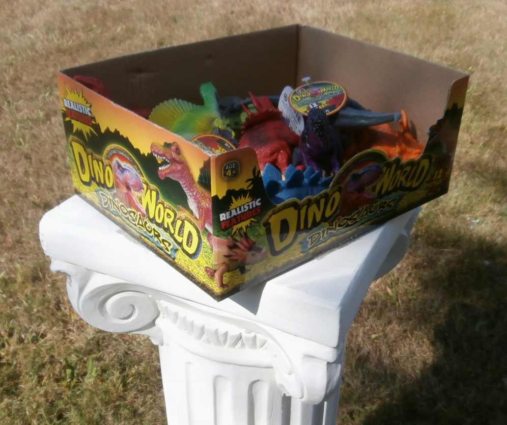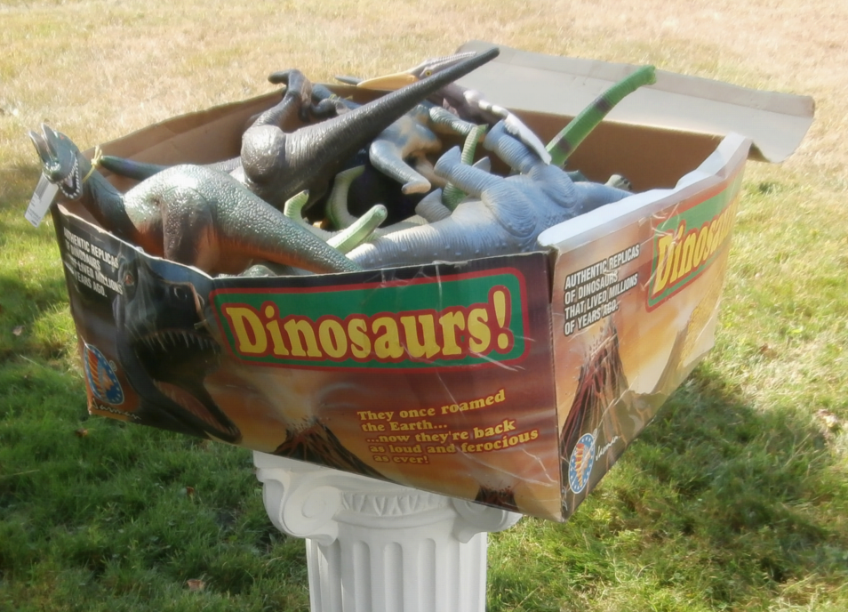 It all added up to quite a pile — I had complete sets of these things, drugstore and Walmart and local bookstore type stuff, including in many cases the display box for the batch. Damn, there were a lot of them — far more of than I remembered buying. I put a lot out on the curb, too, where they were immediately snatched up by casual passers-by. But fear not, none of these were my "good" dinos, such as the inhabitants of the Realm. And I did have a lot more space after they were gone; space for the vast piles of non-dino crap I also have to throw out.